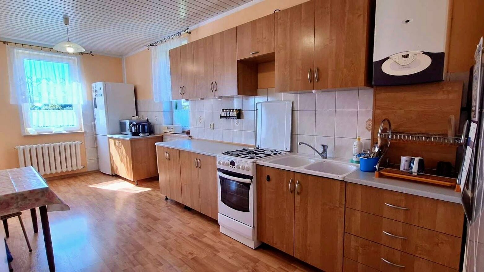 Pomiędzy Koszalinem a Kołobrzegiem. 5 minut od Morza. Powierzchnia Domu ok. 220m2. Parter to przestronny salon , kuchnia, garaż dwustanowiskowy. Piętro 3 pokoje , łazienka , dwie garderoby oraz 20 metrowy pokój rekreacyjny ( do wykończenia ). Dodatkowo wydzielone w parterze niezależne, z własnym wejściem, mieszkanie ( ok. 30m2 ) z kuchnią , łazienką oraz pokojem. Działka ok. 1000m2 z licznymi drzewkami owocowymi, garażem blaszanym oraz piwniczką - ziemianką. Dom ogrzewany piecem na pellet oraz gaz.